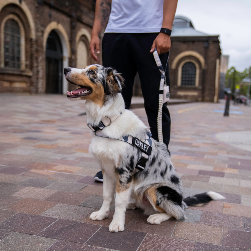 • The bungee absorbs sudden jolts when your dog pulls.