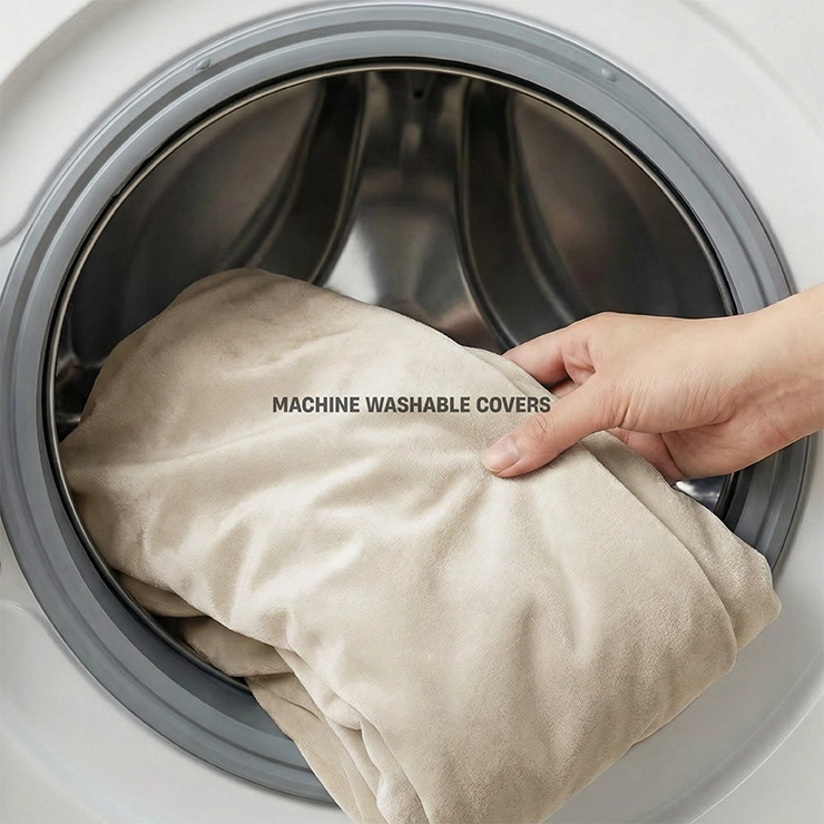 Unzip the removable covers and machine wash below 30 degrees. Wash the cover on a gentle cycle using mild detergent.
