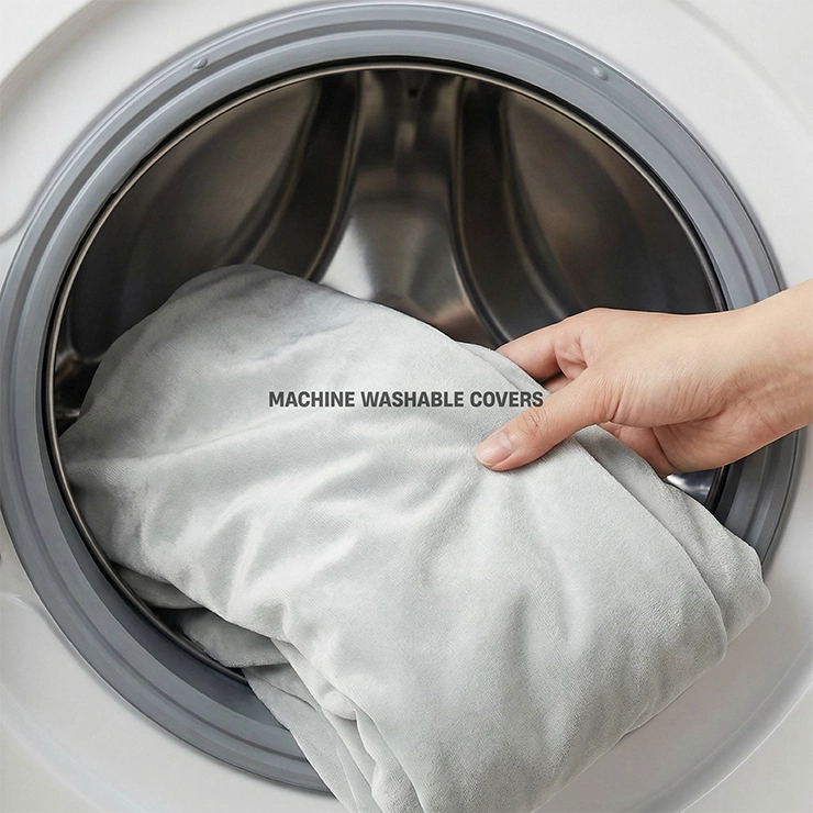 Unzip the removable covers and machine wash below 30 degrees. Wash the cover on a gentle cycle using mild detergent.