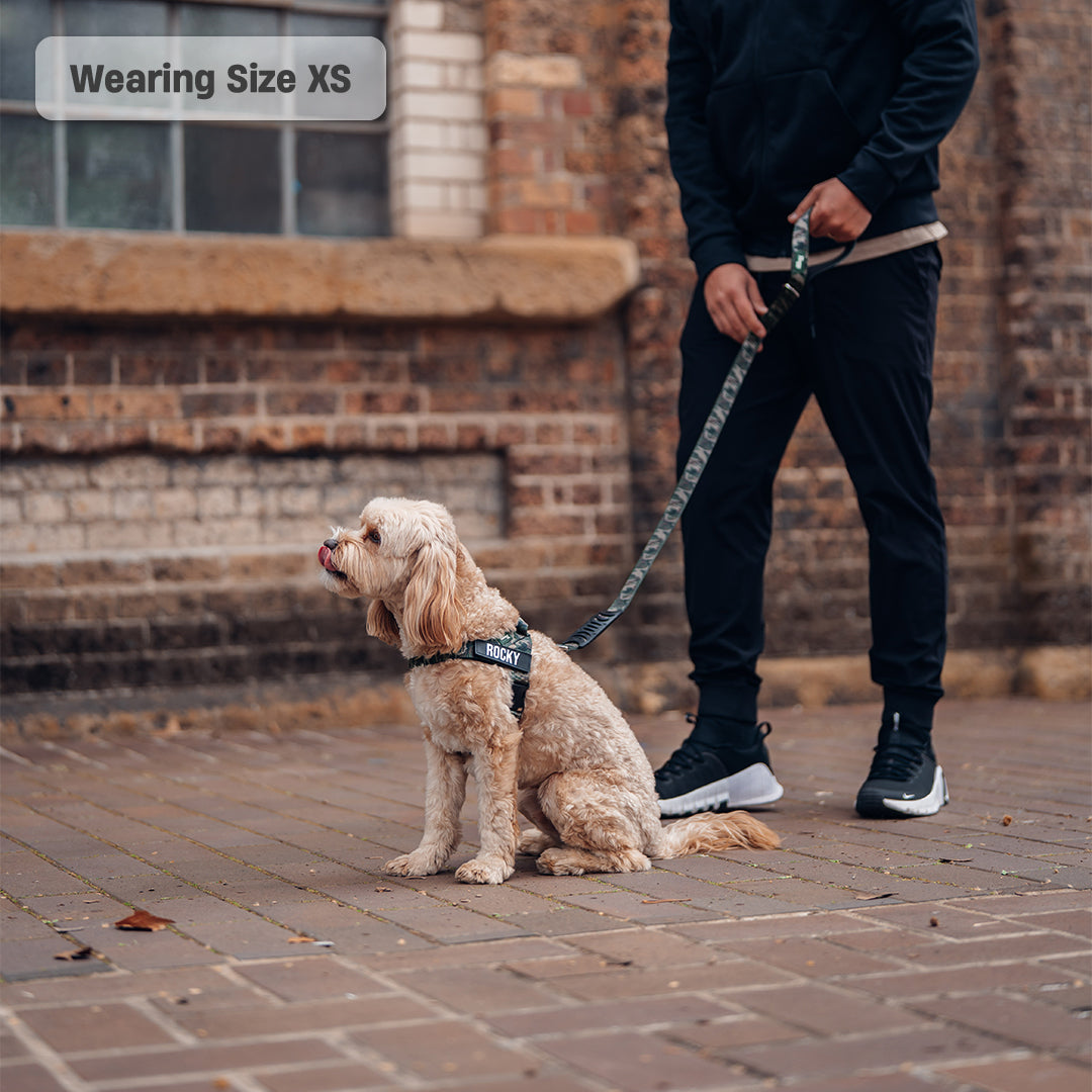 We recommend Harnesses sized S–XL to be paired with the Regular size Leash and Harnesses sized XXS–XS with the Small size Leash.