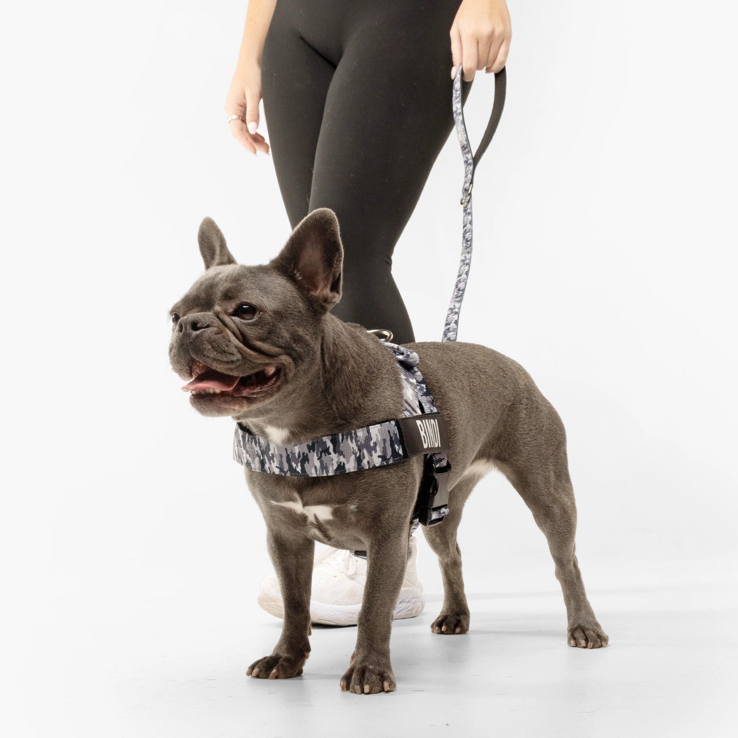 We recommend Harnesses sized S–XL to be paired with the Regular size Leash and Harnesses sized XXS–XS with the Small size Leash.
