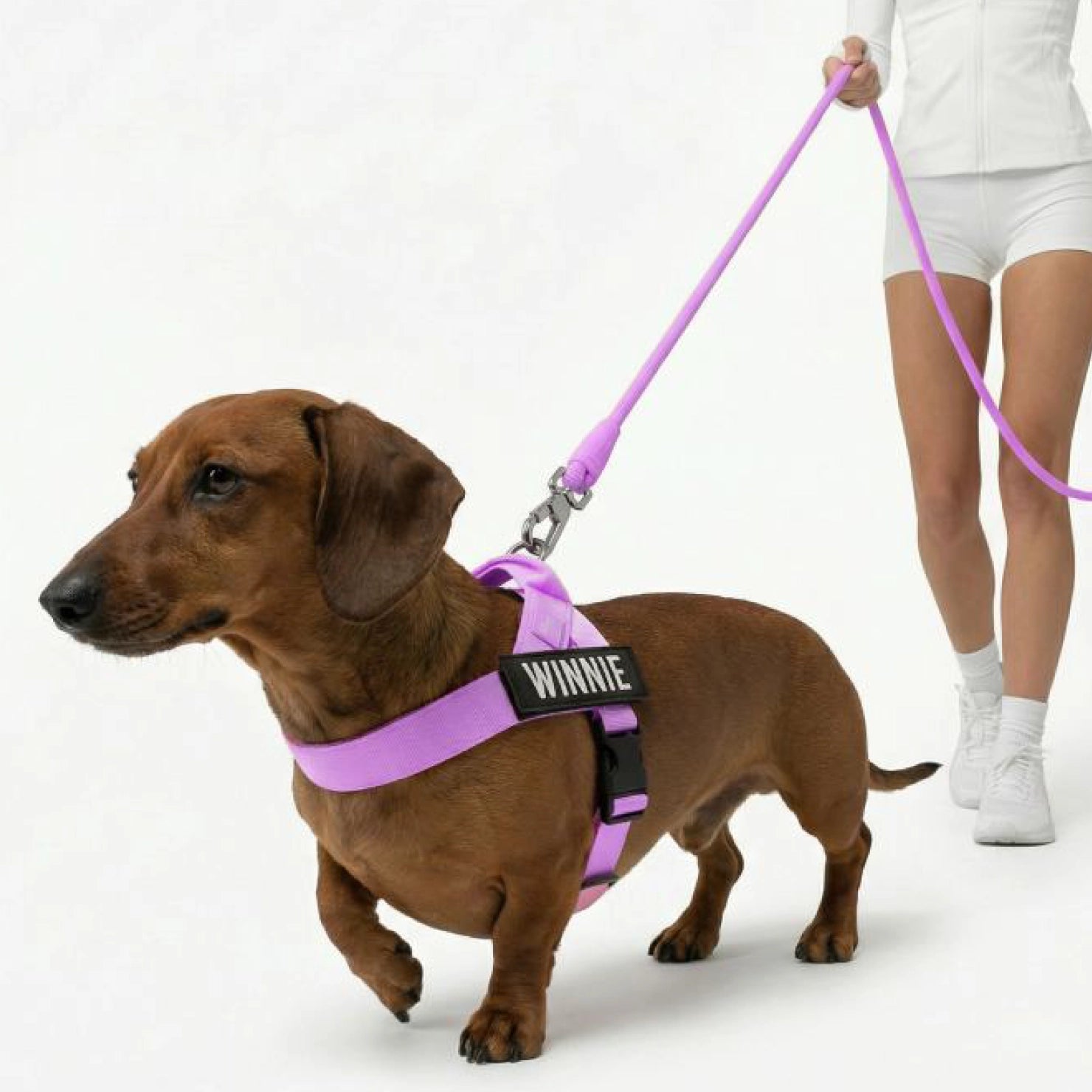 We recommend Harnesses sized S–XL to be paired with the Regular size Leash and Harnesses sized XXS–XS with the Small size Leash.
