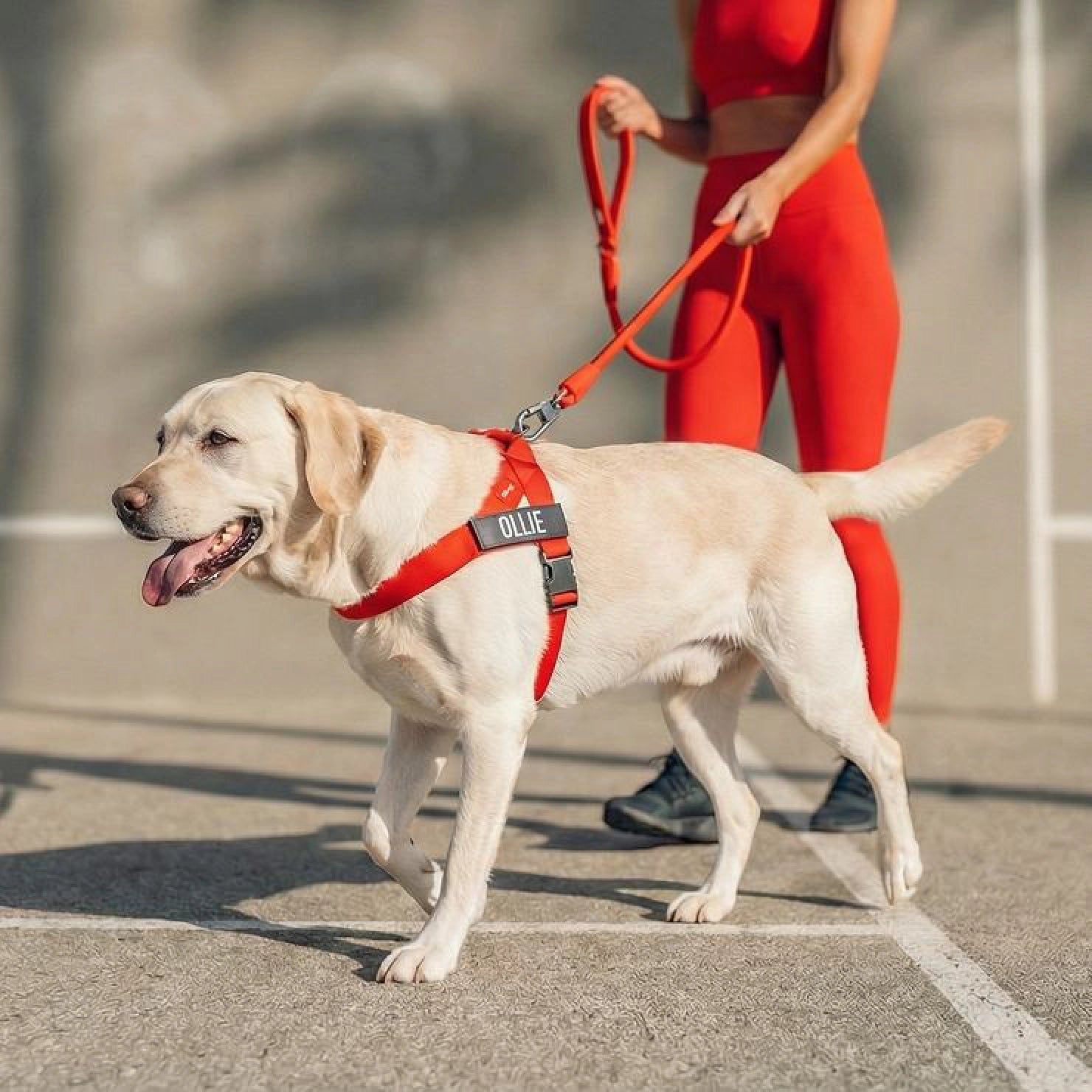 We recommend Harnesses sized S–XL to be paired with the Regular size Leash and Harnesses sized XXS–XS with the Small size Leash.