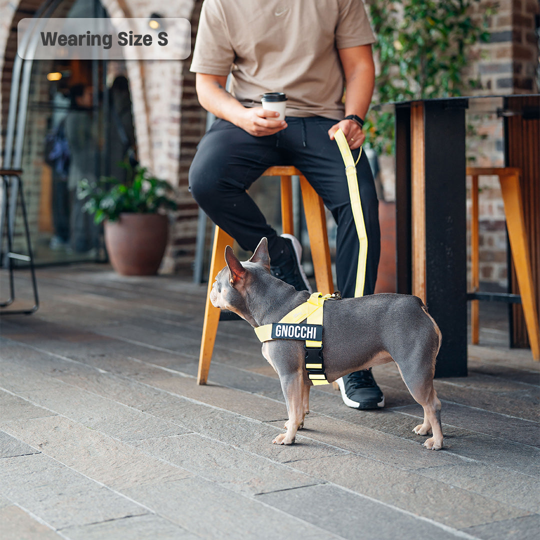 We recommend Harnesses sized S–XL to be paired with the Regular size Leash and Harnesses sized XXS–XS with the Small size Leash.