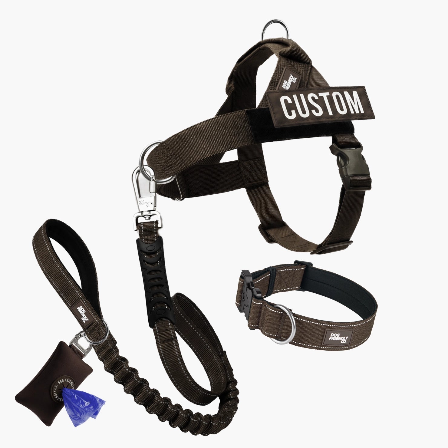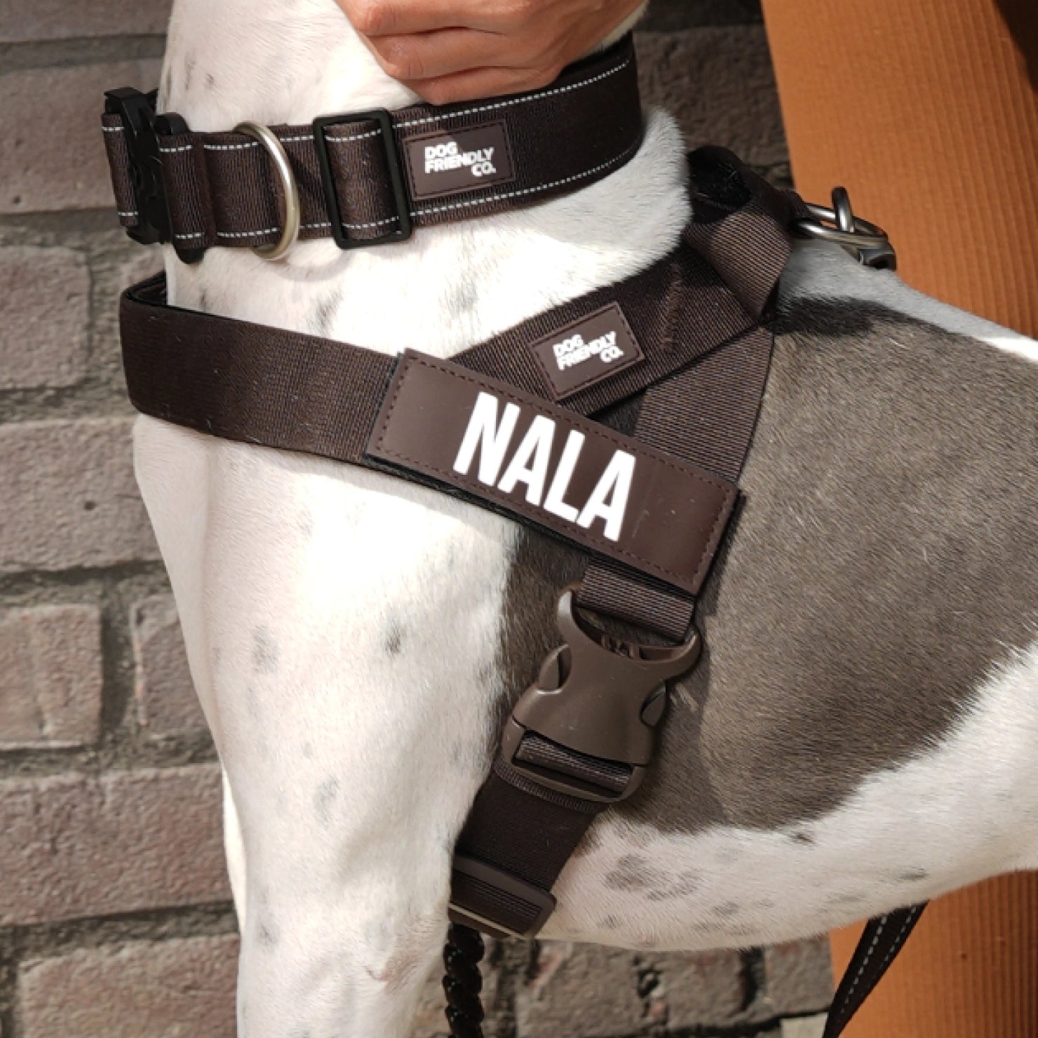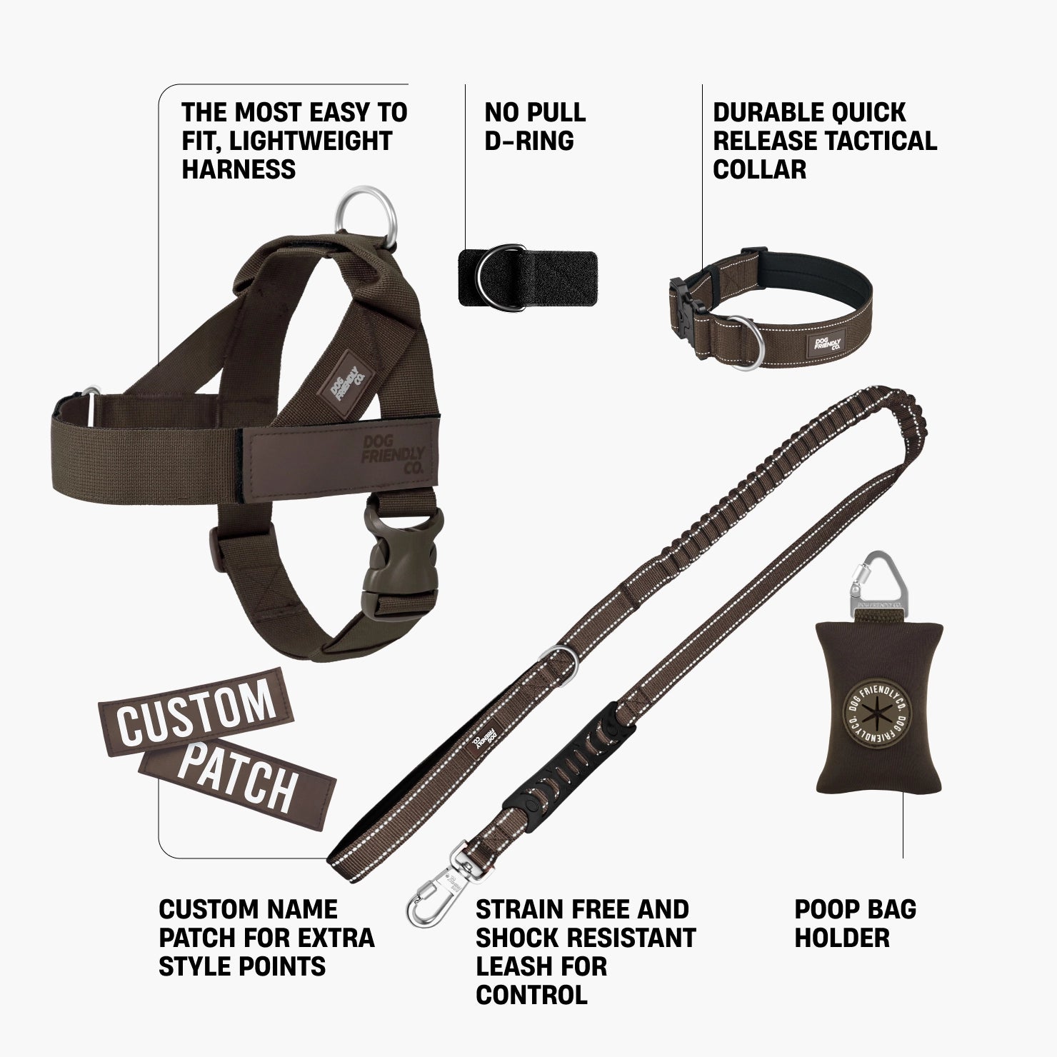 The Coffee set combines a refined no-pull harness with a durable collar and shock-absorbing leash. Designed to help guide your dog more naturally, it creates better balance and control while keeping movement comfortable and relaxed.