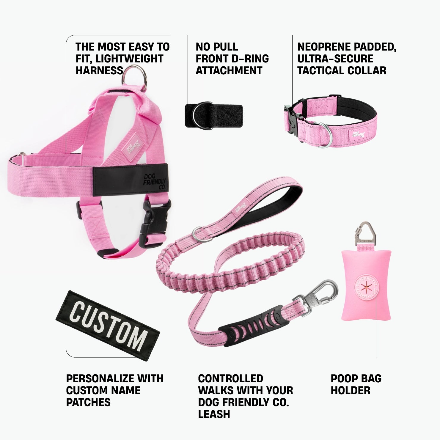 • Easily attaches to your current Dog Friendly Co. harness with minimal setup